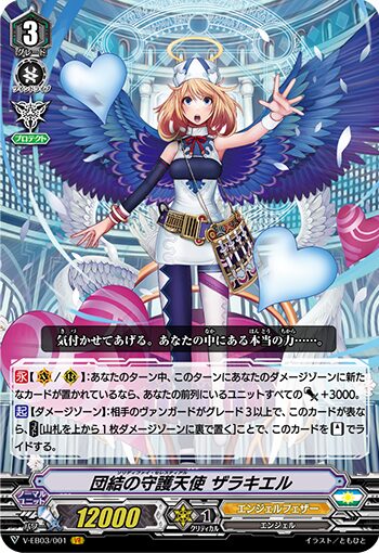 エンジェルフェザーのメインを飾っているような立ち位置のザラキエルだが、実際はそんな突出して強いイメージはない。絶妙に低い攻撃力を前衛だけ上げたり、ダメージゾーンに行った場合の救済処置があるといった、やや守り的な感じの能力。とはいえエンジェルフェザーでデッキを作る上では必須のカード。