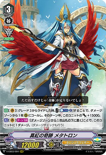 実際ではこちらのメタトロンの方が活躍しているイメージ。とにかくグレード3かライドして自身のダメージを1減らす能力は強力。長期戦にもってこいの能力と言えるだろう。