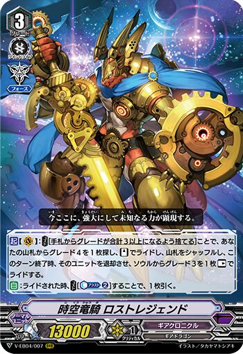 ロストレジェンドの能力でスペリオルコールするのが基本となるユニット。グレード3の序盤で使うことが多い。それでもなかなかバインドできていなくてバインド数0ということもよくあること。