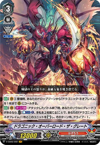 【自】V:登場時、あなたのドロップゾーンから(ドラゴニック・ネオフレイム)を1枚までRにコールする