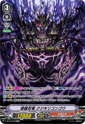【自】V:あなたのカードの能力で相手のリアガードが手札に戻った時、そのターン中、相手は戻されたカードと同じグレードをコールできない。