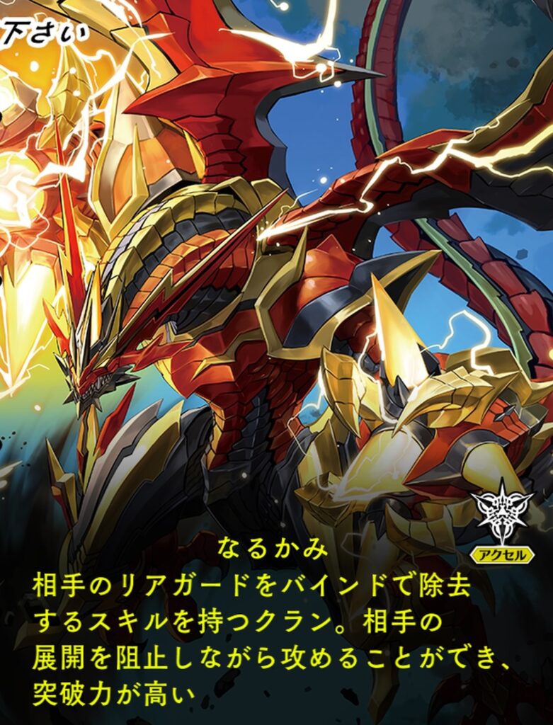 相手のリアガードをバインドで除去するスキルを持つクラン。相手の展開を阻止しながら攻めることができ、突破力が高い