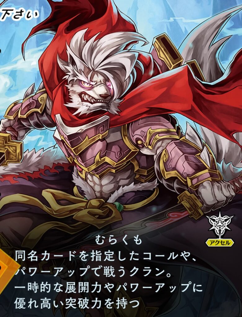 山札の同名カードと入れ替わることでパワーを上げるスキルで戦うクラン。パワー上昇値が非常に高く攻撃力が高い