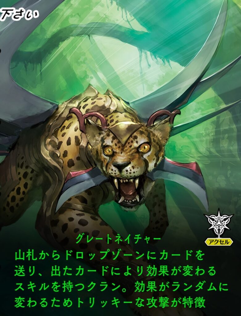 山札からドロップゾーンにカードを送り、出たカードにより効果が変わるスキルを持つクラン。効果がランダムに変わるためトリッキーな攻撃が特徴