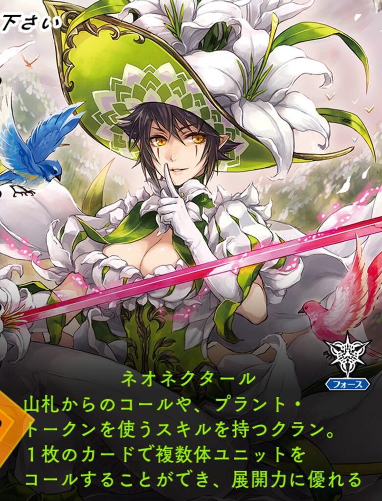 山札からのコールや、プラント・トークンを使うスキルを持つクラン。1枚のカードで複数体ユニットをコールすることができ、展開力に優れる