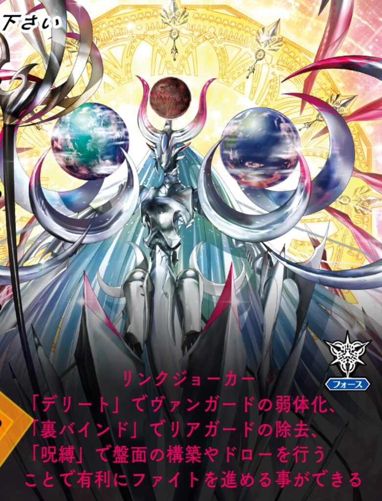 (デリート)でヴァンガードの弱体化、(裏バインド)でリアガードの除去、(呪縛)で盤面構築やドローを行うことで有利にファイトを進めることができる